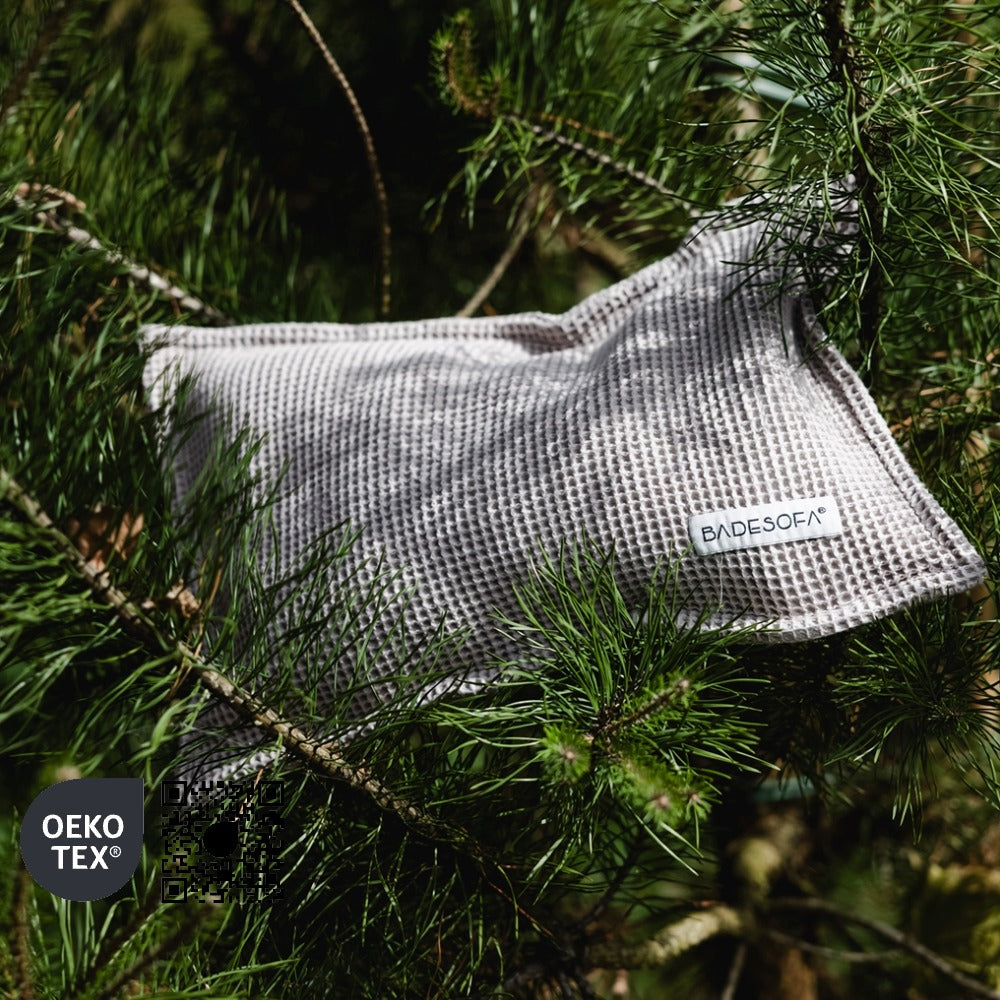 Handcrafted from fabric remnants of our towel production, the stone pine cushion stands for sustainable design and conscious use of resources. The cover, made from 100% organic cotton in fine waffle piqué, surrounds an inner cushion filled with aromatic stone pine from the Austrian Alps.
